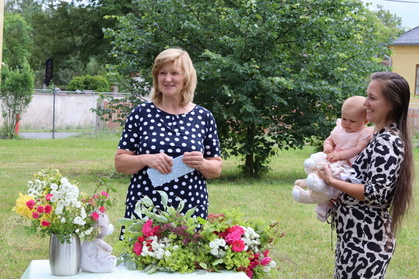Do naší obce jsme 16. června přivítali dva nové občánky: Karolínku a Adámka. Malá slavnost se konala na zahradě před bývalou školou. Program zahájila paní starostka MVDr. Martina Nováková proslovem k rodičům. Ve své řeči zmínila radost z nových obyvatel, povzbudila je k hrdosti na svou obec a rodičům popřála mnoho společného štěstí. Vše doprovázel svou hudbou pan Květoslav Červený. Po gratulaci následovalo předání drobných dárků a všichni byli pozváni na posezení s občerstvením, kde si mohli společně pohovořit. Celou akci provázelo příjemné letní počasí, které umocnilo atmosféru celého odpoledne. Věříme, že se při podobné příležitosti znovu sejdeme.